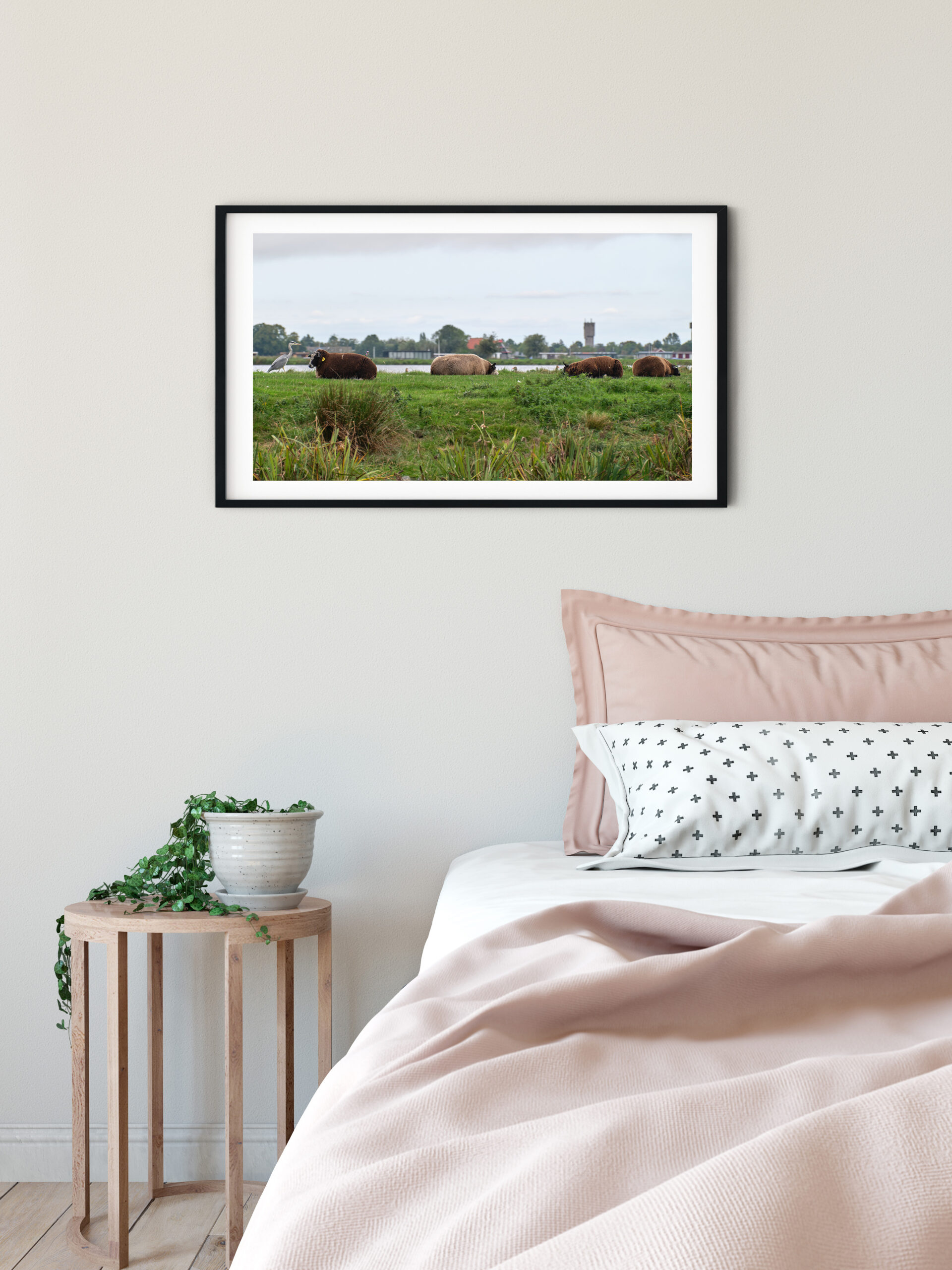 Prints suitable for framing with the white border surrounding the image that is due to the image ratio that differs from the paper or you can add a mat board with the size you want.