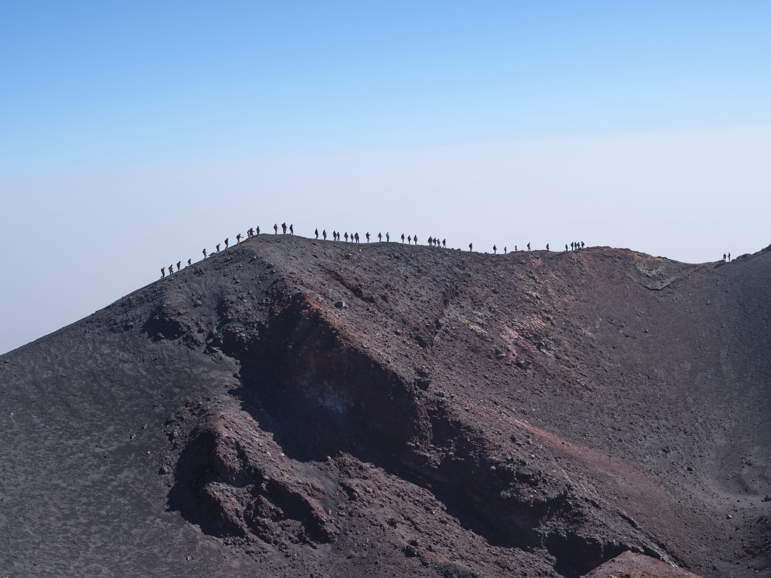 Mountainscape of Taomina with hikers in the distance, Sicily, Italy