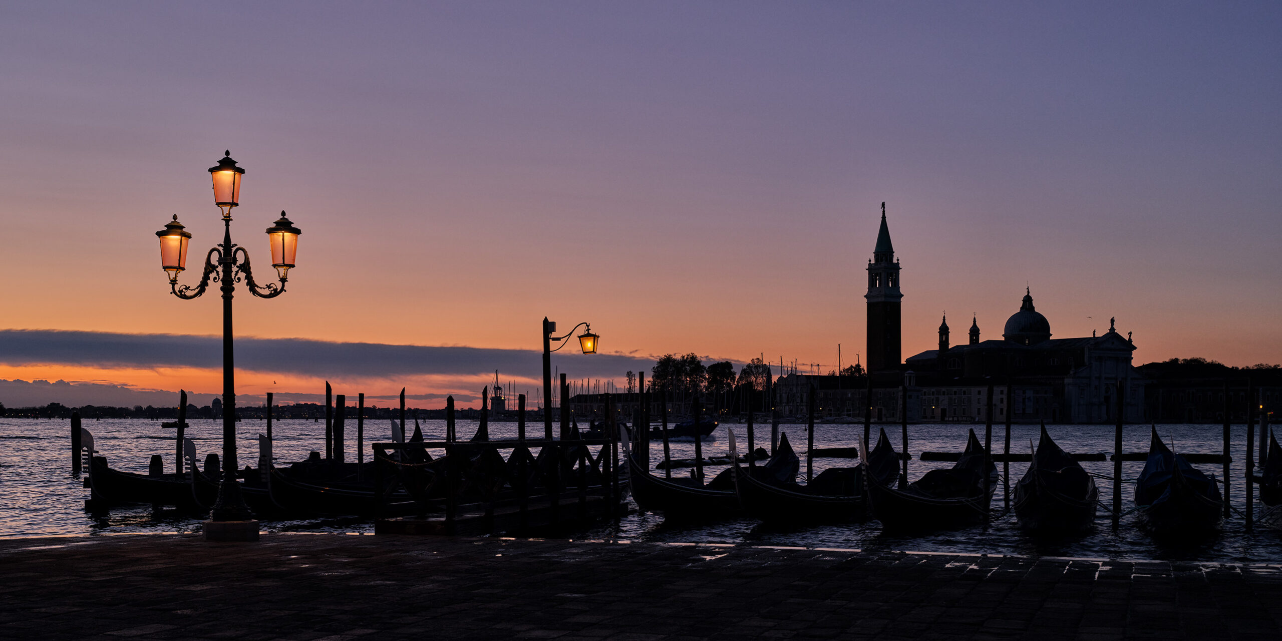 This photo was taken from St Mark’s Square in Venice early in the morning. We can see the Campanile di San Giorgio Maggiore and the Abbazia di San Giorgio Maggiore in the background.